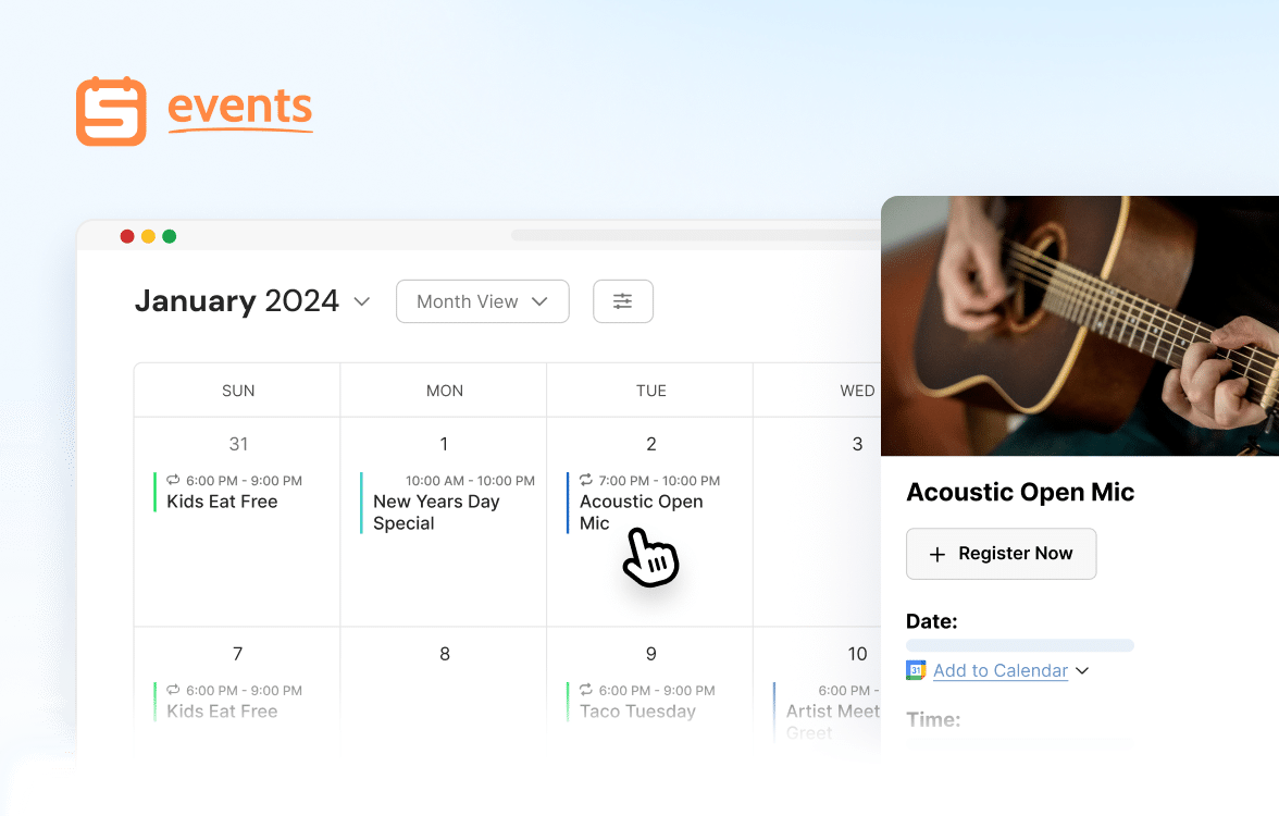 Sugar Calendar Events offers a simple, lightweight solution with essential features to plan, promote, and manage all your events seamlessly in WordPress.